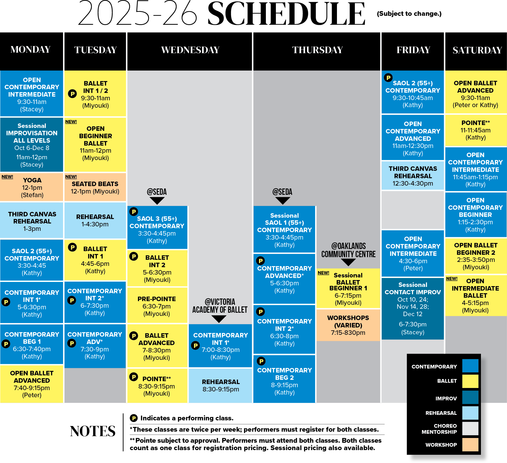**Pointe subject to approval. Performers must attend both classes. Both classes count as ‘1 class’ for registration pricing, sessionals also available